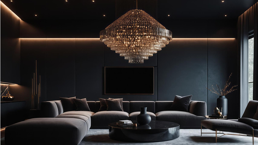 The design of upscale interiors uses architectural elements to create different lighting levels. The entire space requires more than just a single chandelier to achieve its intended atmosphere.